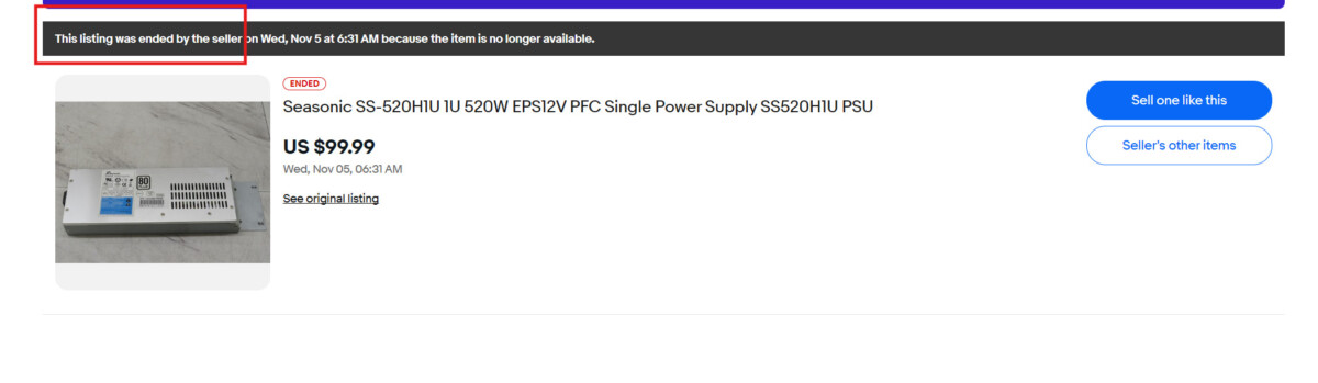- When you open a sold listing, you may see a message at the top such as ‘This listing was ended by the seller’ or ‘This item is out of stock.’ This means the item was not actually sold. Try to avoid using these listings for pricing; however, if it is the only available listing, you may use it and leave a note.